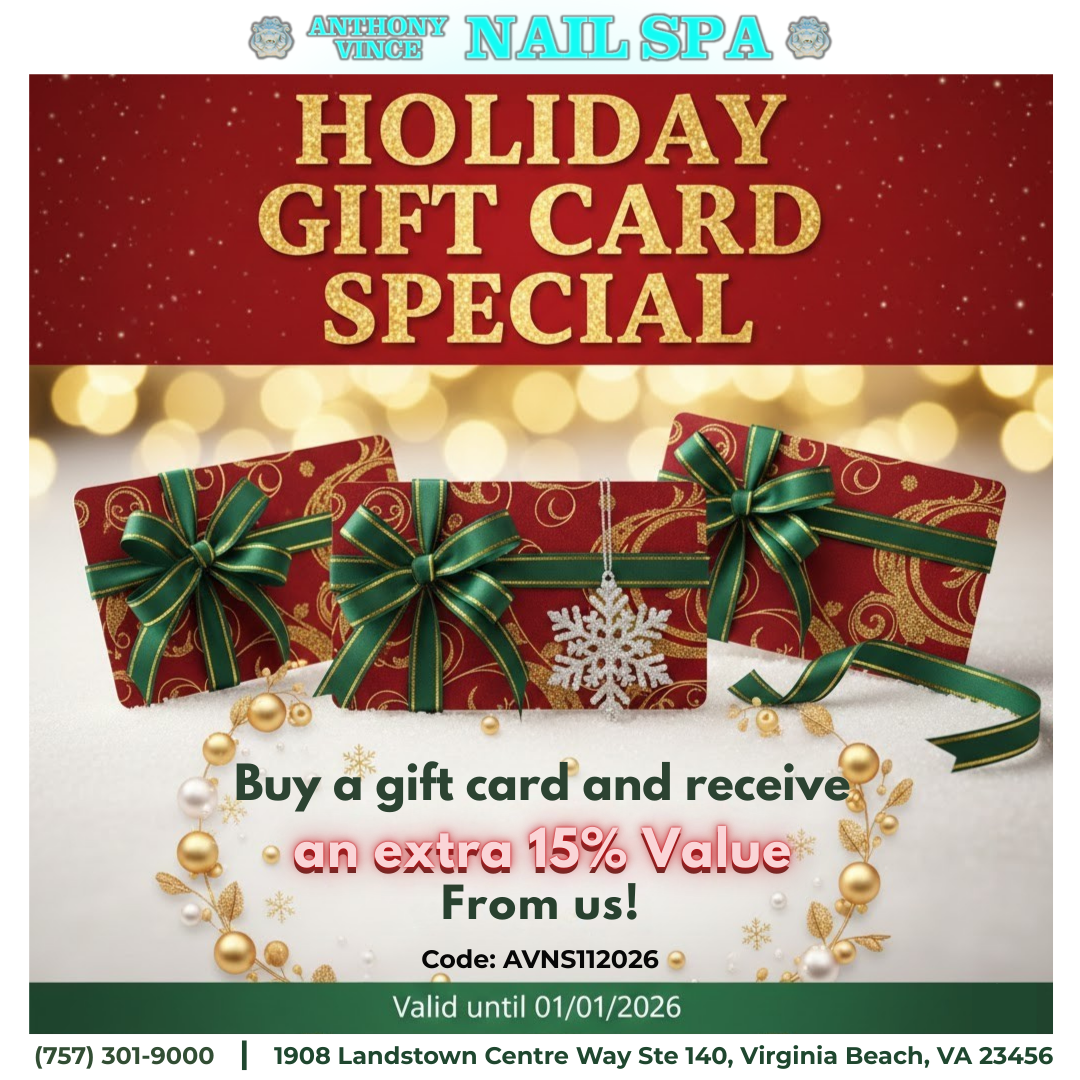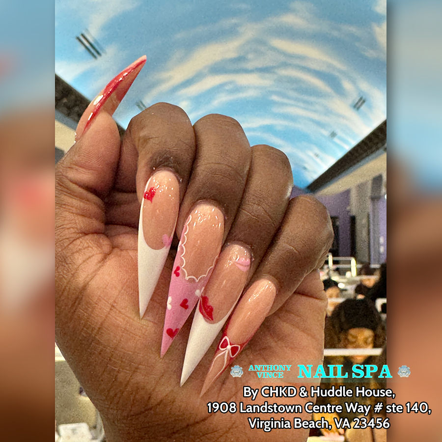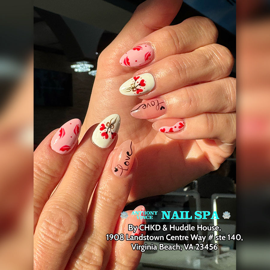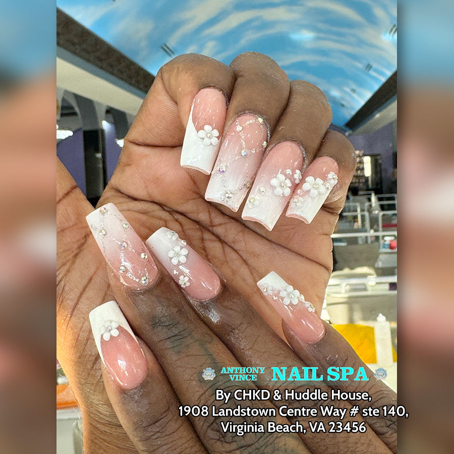 Located at a beautiful corner in Virginia Beach, Virginia 23456, Anthony Vince Nail Spa is a regular salon for everyone, as we always try our best to deliver the highest level of customer’s satisfaction. Our salon takes pride in providing our valued customers all good services and top-high quality products as well as materials. You can find all nail-related services, from Manicure, Pedicure to Pink & White. At Anthony Vince Nail Spa, a wide choice is provided to customers, so you can use any services that you like.
